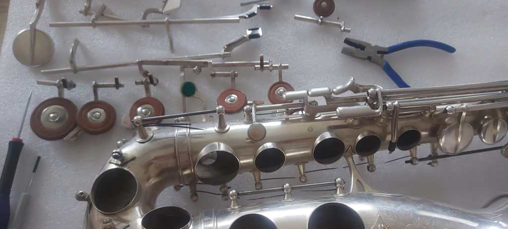 Une restauration complète d’un modèle rare de facture parisienne. Trois vues avant (oxydation, patine, mécanique ancienne) et trois vues après (brillance retrouvée, tampons neufs, équilibre tonal).